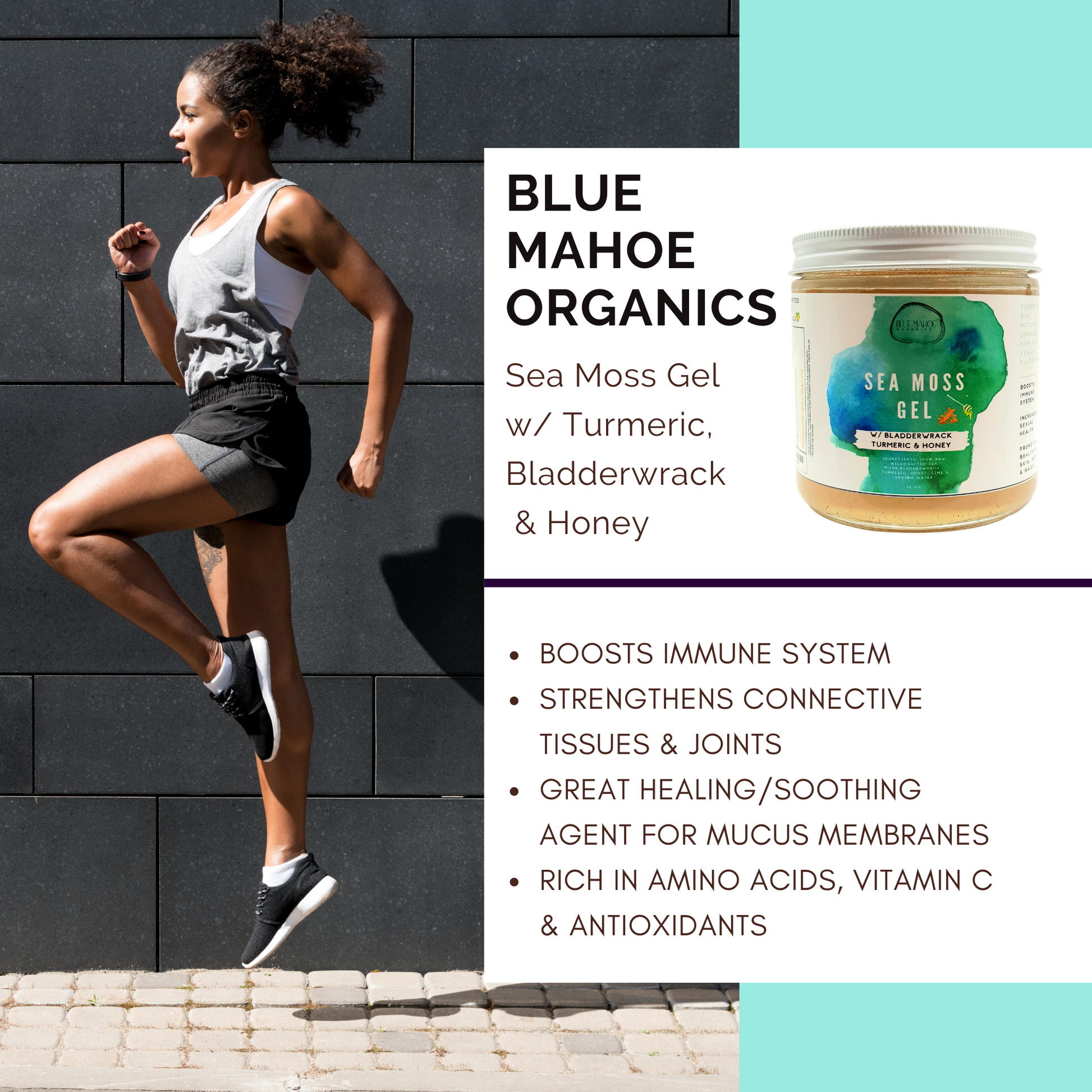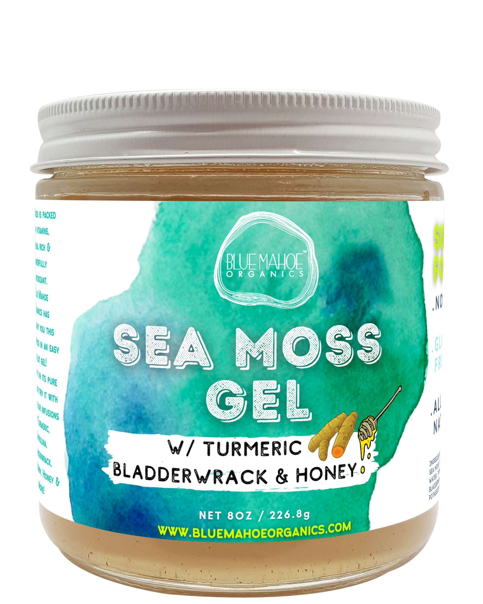 Blue Mahoe Organics - Sea Moss Gel with Turmeric, Bladderwrack and Honey – Boosts Immune System – Strengthens Connective Tissues and Joints