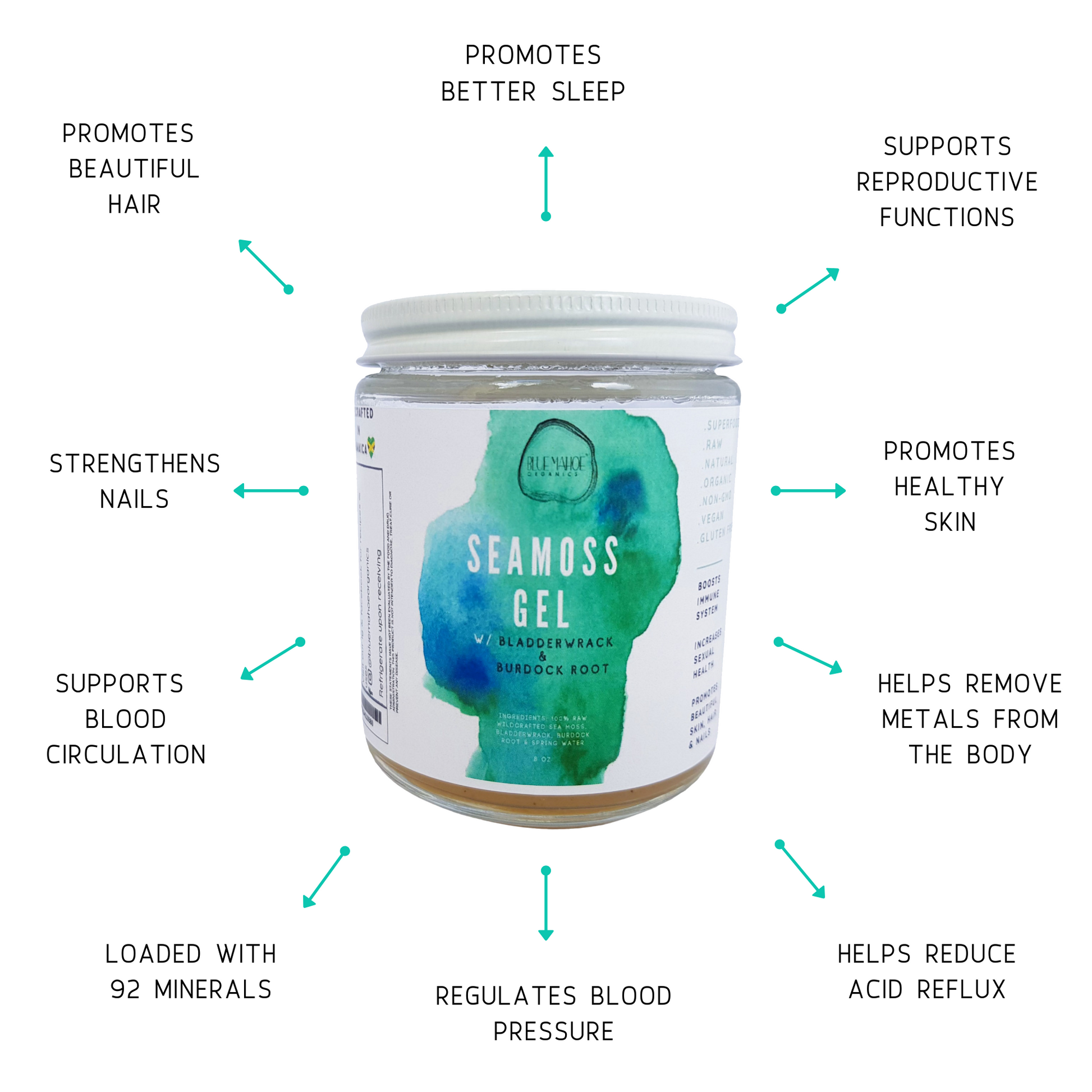 Our items are made entirely of premium, organic sea moss. It's made in a clean environment. It contains all vitamins and minerals that your body needs. Organic seamoss gel is naturally rich in vital nutrients and vitamins. It contains vitamins a, b, c, d, e, g, and k, among others, which give your body more energy and may help your immune system.